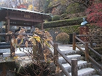 ![]() 県道33号から温泉街の石段を登った伊香保神社の更に先、河鹿橋・泉飲所(画像中)の先にある立ち寄り専用の露天風呂。敷地内には源泉”黄金の湯”とベルツ博士の銅像がある(画像右)。竹垣と木々に囲まれた湯船は熱めと温めの二つある。オイラが入った時はまさに紅葉真っ盛りで、湯船は黄色い紅葉の葉がプカプカと浮いていた。チョッと緑懸かった黄土色のお湯の泉質はカルシウム・ナトリウム−硫酸塩・炭酸水素塩・塩化物温泉でpHは6.3、泉温は41.6℃(中性低張性温泉)。効能は神経痛、筋肉痛、関節痛、五十肩、運動麻痺、関節のこわばり、うちみ、くじき、慢性消化器病、痔疾、冷え性、病後回復期、疲労回復、健康増進、切り傷、やけど、動脈硬化、慢性皮膚病、虚弱児童、慢性夫人病など。因みにシャンプーやボディーソープなどは常備されていない。湯船を楽しむための温泉場である。 |