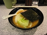 ![]() JR川崎駅の駅ビル地下にあるラーメン屋街の一角にある。スープは塩味が基本でエビ油とホタテで味を整えており、アッサリとしている中にも旨味が出ている。平打ちの麺も程好い歯応えがあえう。トッピング桜えびのかき揚げも塩味スープにマッチして結構イケる。太麺・味噌派のオイラも満足の一杯である。 |