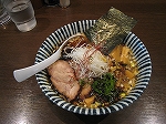 ![]() JR川崎駅の駅ビル地下にあるラーメンシンフォニーというラーメン屋街の一角にある店。オイラが食べたのは”黒葱油”の味噌(画像右)。黒い油とスープが微妙に分離してそれぞれが異なった濃いぃキャラの味で、油とスープの配分が変化すると味の印象も変化する。麺は歯応えのある細麺で油とスープが良く絡む印象。太麺・アッサリ派のオイラもそれなりに満足できる一杯である。 |