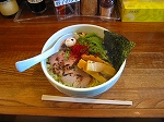![]() 厚木の山奥・七沢にあるラーメン屋。スープは鶏がらベースでさっぱり感があり、醤油と塩が選べる。麺は細麺。店の雰囲気はチョッとしたショットバー風で、器もステンレス製でこだわりが見られる。 |