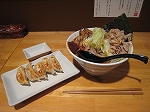 ![]() 海老名VINAWALKのご当地らーめん処にあるたんめん専門店。店名通り野菜がどっさり載った”たんめん”がメイン。その他、オイラが注文したのは”毎日野菜たんめん”(画像左/720円)と”肉餃子”(画像右/250円)。スープは豚骨 鶏がらベースの塩味。シャキシャキ感の残る野菜がどっさり載っている。平打ちの太麺は気持ち歯応えがある。ワンタンメンや普通のラーメンもある。(June.2012) |