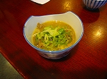 穂高駅すぐ近くの日本蕎麦屋。メニュー一押し”アルプスわさびそば”はわさびの茎漬けをのせた盛り蕎麦で、とろろをかけた小鉢が付く。わさびの茎漬けがピリりと効いて美味しく、肝心のそばものど越しの良いものだった。因みに”アルプスわさびそば”は1,200円也。 |