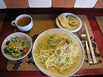 ![]() 五竜遠見スキー場・エスカルプラザ前にあるパスタ屋で、夜は呑み屋に変身する。オイラたちが行った日の前日にアニキが見つけた店で、甚く御気に召したらしくアニキは翌日もオイラ達を引き連れてのご来店となった。オイラが注文したキャベツとベーコンのペペロンチーノ、他店には無いらしくなさがオイラ好み。ランチメニューにするとスープとサラダとパンが付く。 |