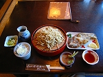 ![]() R19沿い、JR中央本線・宮越駅近くにある手打ち蕎麦屋。新蕎麦の表示に惹かれてふらぁ〜と入ってしまった。最大特徴は山葵を自分でおろす(画像中)ことと海苔が載ったせいろ・いわゆる盛がメニューにないこと。蕎麦の量はせいろの枚数で調整でき、1枚だと少し少なめでオイラには1.5枚くらいが丁度良い。サイドメニューには野菜天ぷらもあるがオイラが行った時には売り切れ。と言う訳で、まるまるの岩魚を開いて揚げた”岩魚から揚げ”を注文、薄口のポン酢醤油がとってもマッチしていた。 |
