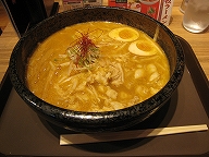 ![]() 新千歳空港ターミナルビル3階の北海道ラーメン道場内にある。元来は帯広にある味噌専門店で、赤味噌と白味噌が選べる。味噌派のオイラは散々迷った挙句、白味噌を選択。甘さ控えめのスープはまろやかで味噌汁ちっくな感じがする。麺は中太縮れ麺で歯応えがある。因みに画像右は白味噌・ハーフ麺(550円)で、小腹が空いた時や女性に好適。 |