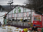 ![]() ホワイトワールド尾瀬岩鞍にあるゲレンデ食堂。微妙にハイソな雰囲気を漂わせているスキー場の中、掘建て小屋と素朴なメニューが異彩を放っている。メニューはモツ煮(画像右)やおでんなどの渋いものからお汁粉やピザなど、ゲレ食らしからぬものまで多彩である。無料の漬物も複数あって、ビールのツマミに好適。甘党には花豆ジェラートがお奨め。 |