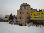 ![]() ホワイトワールド尾瀬岩鞍のゲレンデ沿い、第二駐車場近くにあるお宿。夕食はイタリアンでひじょーにボリュームがあり、メインにピザが出てくる(画像右)。朝食は洋食と和食が日替わりらしいが、和食で出てくる煮物は丁寧に作られている。乾燥室が温かいのがオイラ達・マニアックスキーヤーにはありがたい。宿泊料も意外にリーズナブルで、ハマってしまいそうなお宿である。 |