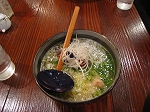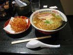![]() JR川崎駅の駅ビル地下にあるラーメン屋街の一角にある。スープは塩味が基本でエビ油とホタテで味を整えており、アッサリとしている中にも旨味が出ている。平打ちの麺も程好い歯応えがあえう。トッピング桜えびのかき揚げも塩味スープにマッチして結構イケる。太麺・味噌派のオイラも満足の一杯である。 |