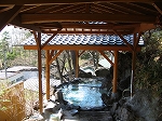 露天風呂で内湯が無い。湯船は結構熱く直ぐには入れないので、気温が低い時は寒い思いをするハメになる。泉質はナトリウム−塩化物・硫酸塩温泉で、浸かってみると八ヶ岳近傍に特有な泉質であることが判る。 |