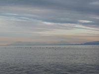 | 一応、男女別に小屋掛けされている | 国後が正面に望める |