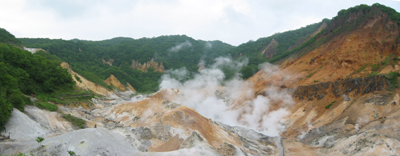 | ”地獄谷”は爆裂火口跡でにできた登別温泉の大泉源地 | |