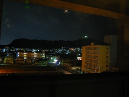 函館駅から程近い外海沿いにある見た目が古めかしいビジネスホテル。その名の通り温泉浴場がある。温泉浴場からは窓越に函館の外海が見られる。